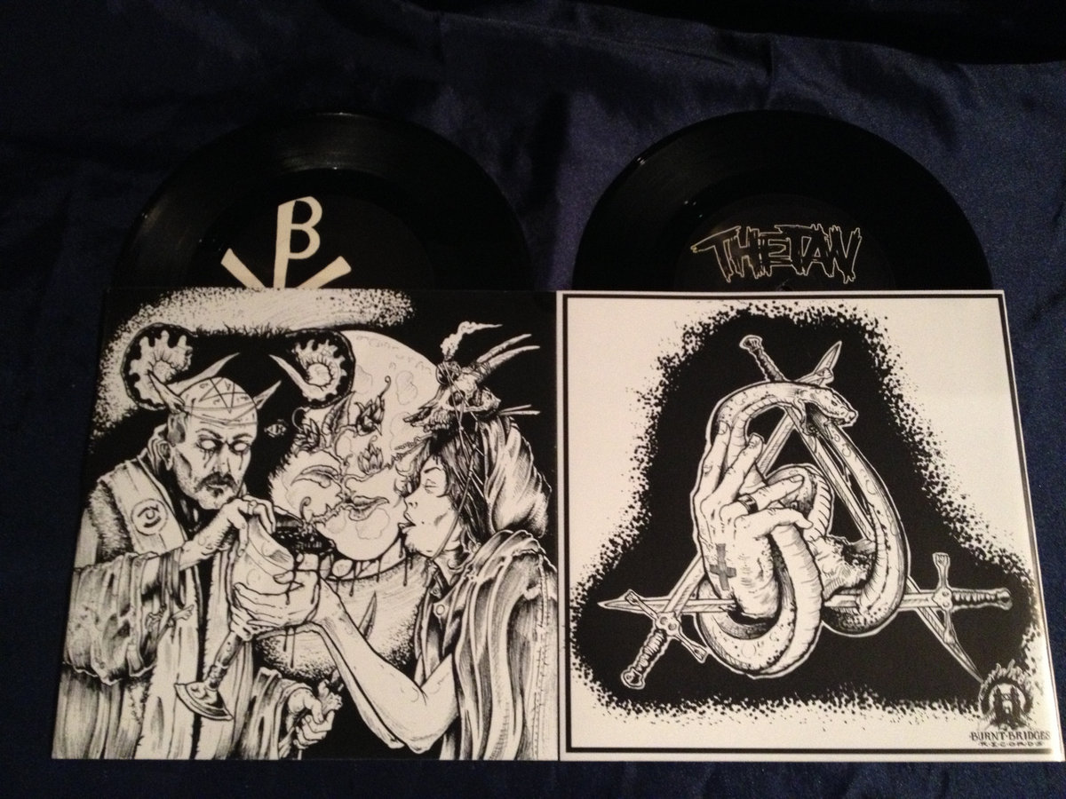 Absolutely delightful vinyl record of 2 of the most guitaristless bands in the US. These records can also be melted down to smell as bad as the crowd at our shows. Y'know, for the full effect.